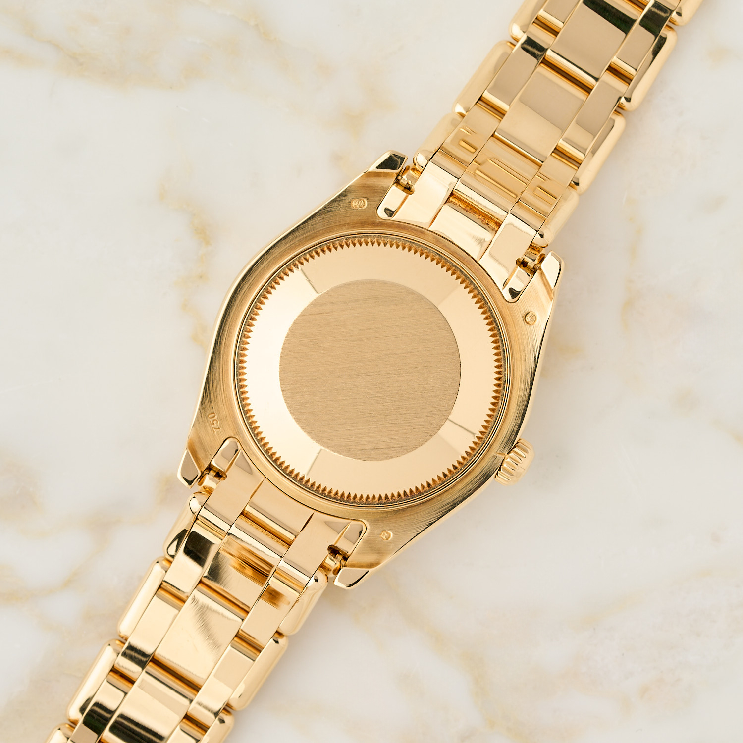 | Bezel | Smooth 18K Yellow Gold with 12 Diamonds – Factory Set |