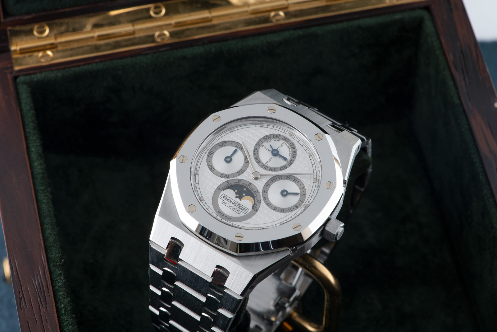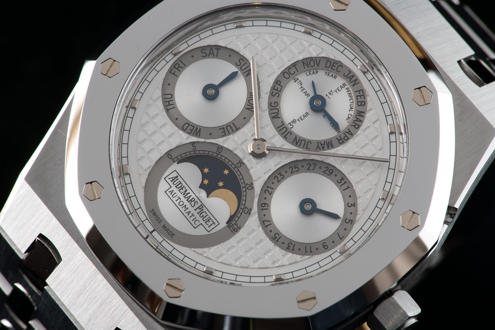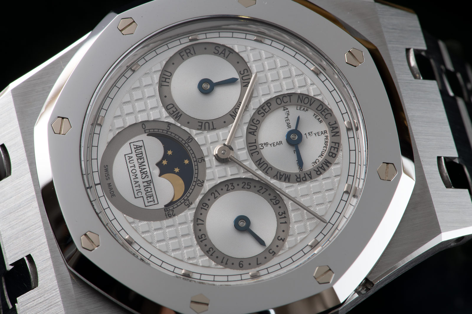 Con la referenza 25820SP il brand fonde due creazioni portanti della Maison, la complicazione Calendario Perpetuo ed il modello Royal Oak.