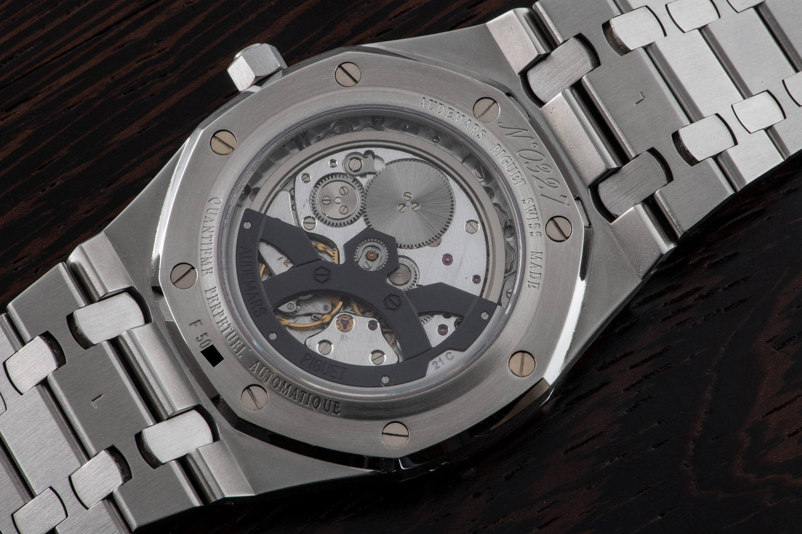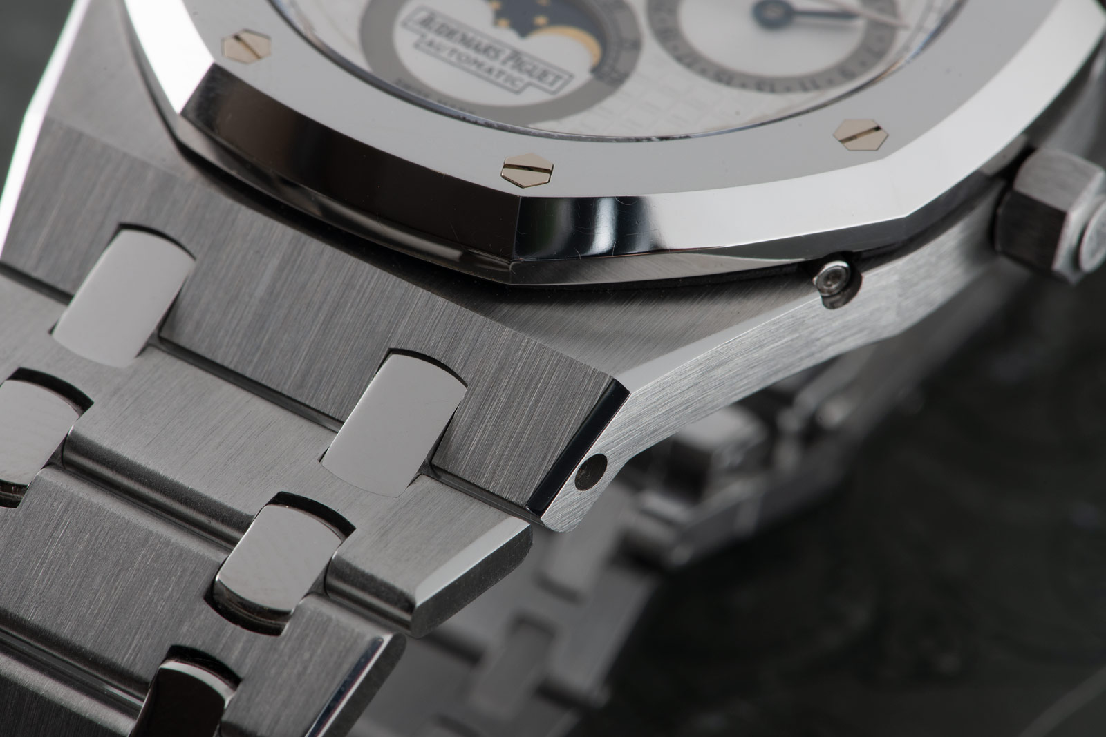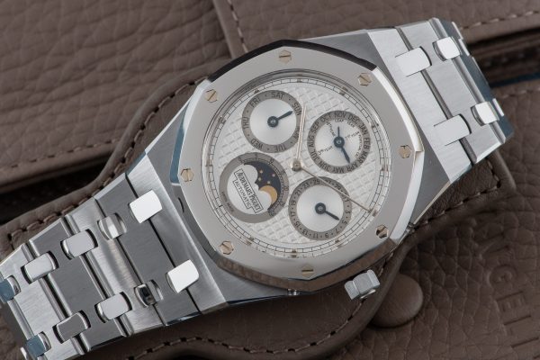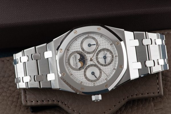 Con la referenza 25820SP il brand fonde due creazioni portanti della Maison, la complicazione Calendario Perpetuo ed il modello Royal Oak.