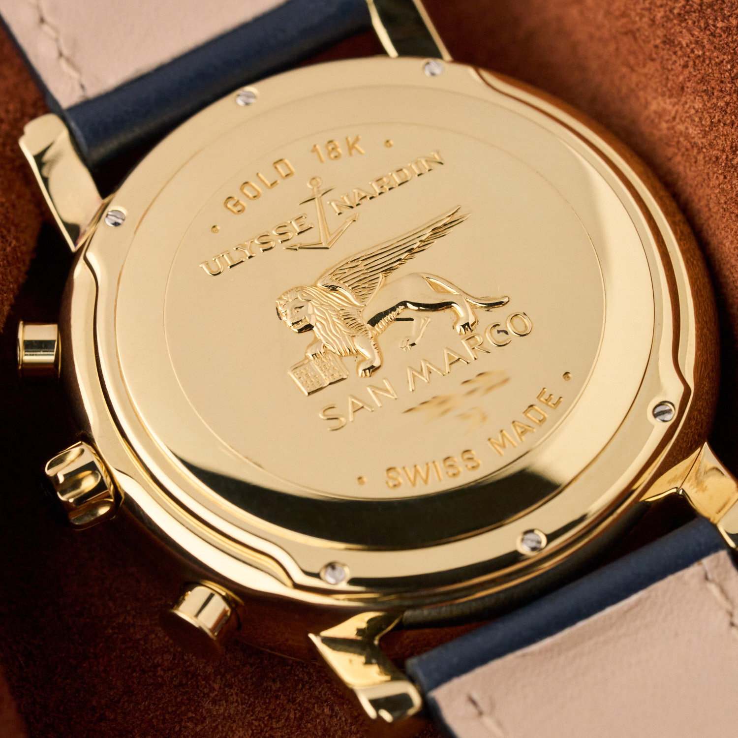 | Strap/Bracelet Material | Blue Leather strap with 18K Yellow Gold Ulysse Nardin Ardillon |
